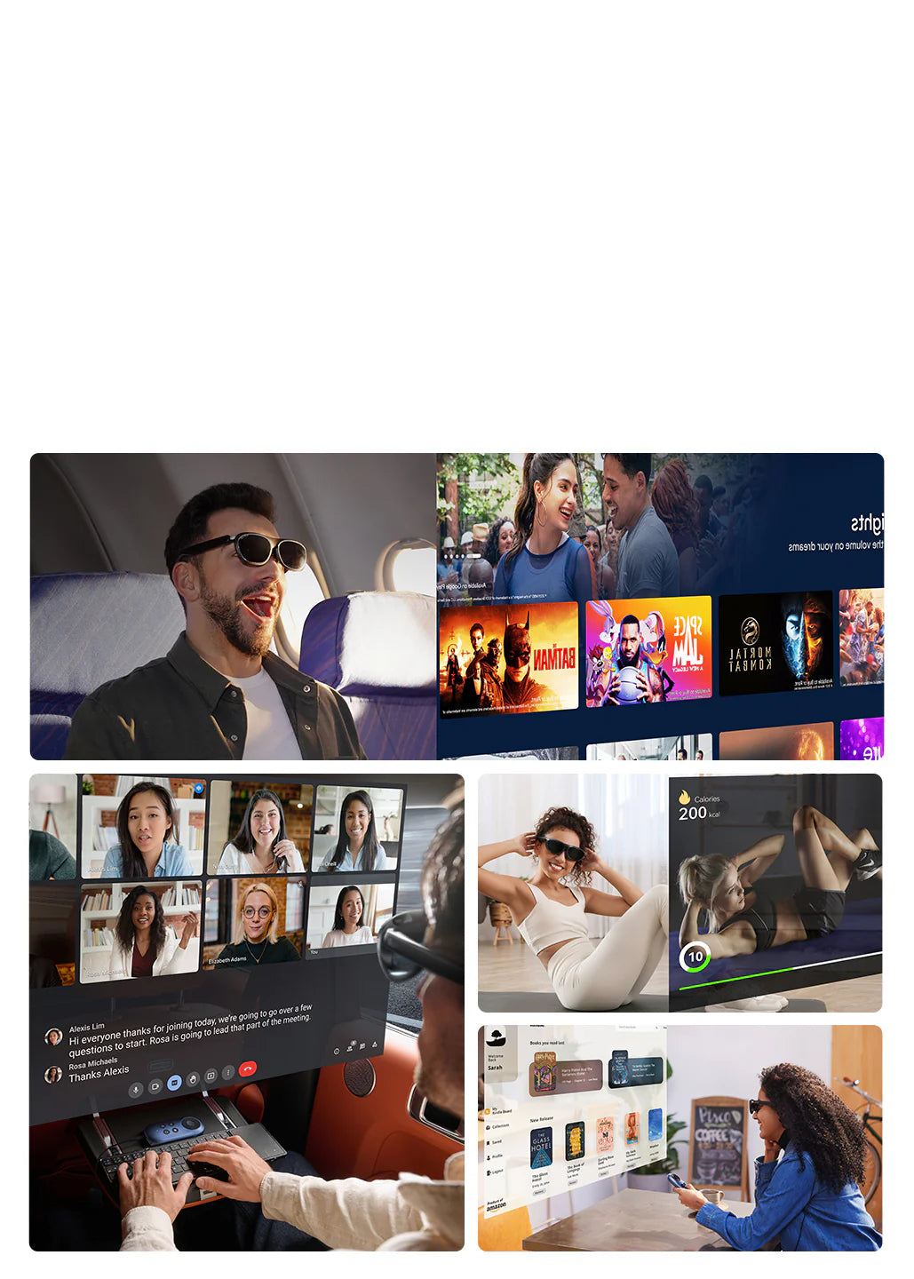 Enjoy immersive movies, thrilling games, guided travel, enhanced productivity, adaptable reading, and interactive workouts.